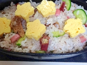ピンクのランドセルで入学おめでとう弁当 デコ弁 ちらし寿司 とまとママのおいしいごはんとお弁当